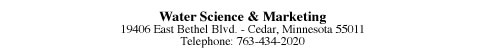 Contact Us Water Science & Marketing 19406 East Bethel Blvd. Cedar, Minnesota 55011